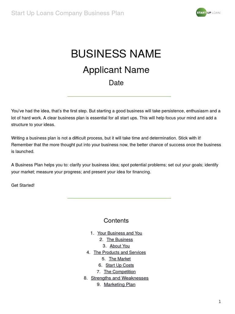 Business Planning Templates Start Up Loans Company